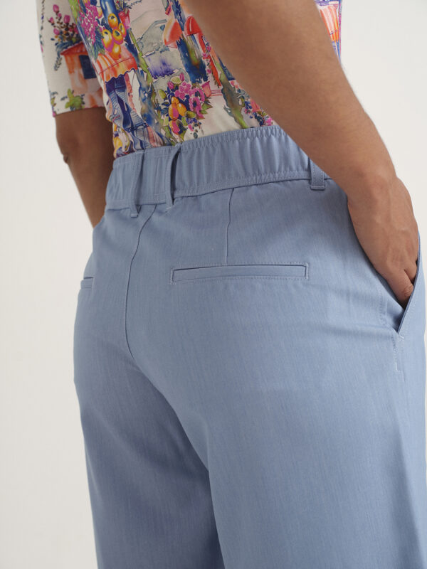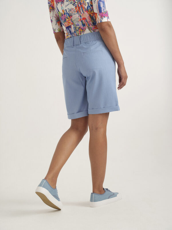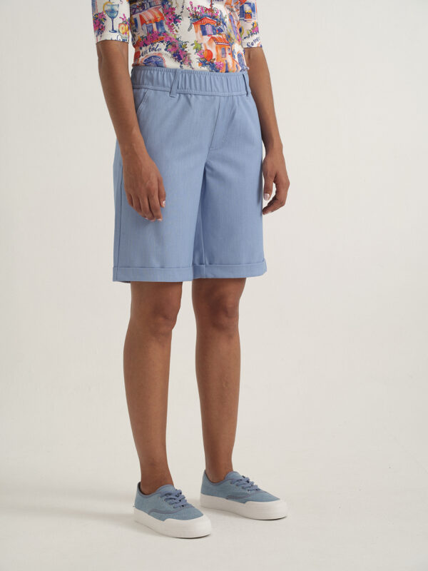 Pantalón bermuda de pata ancha y vuelta en el bajo, de la marca Azay. Cintura elástica y con trabillas. Bolsillos oblicuos delanteros y ocultos traseros. En algodón extremadamente suave y transpirable.