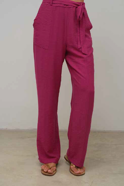 Pantalón de cintura elástica y pata recta, en tejido fluido, de la marca Scorzzo. Cinturilla con trabillas y lazada, bolsillos delanteros de plastón grandes.